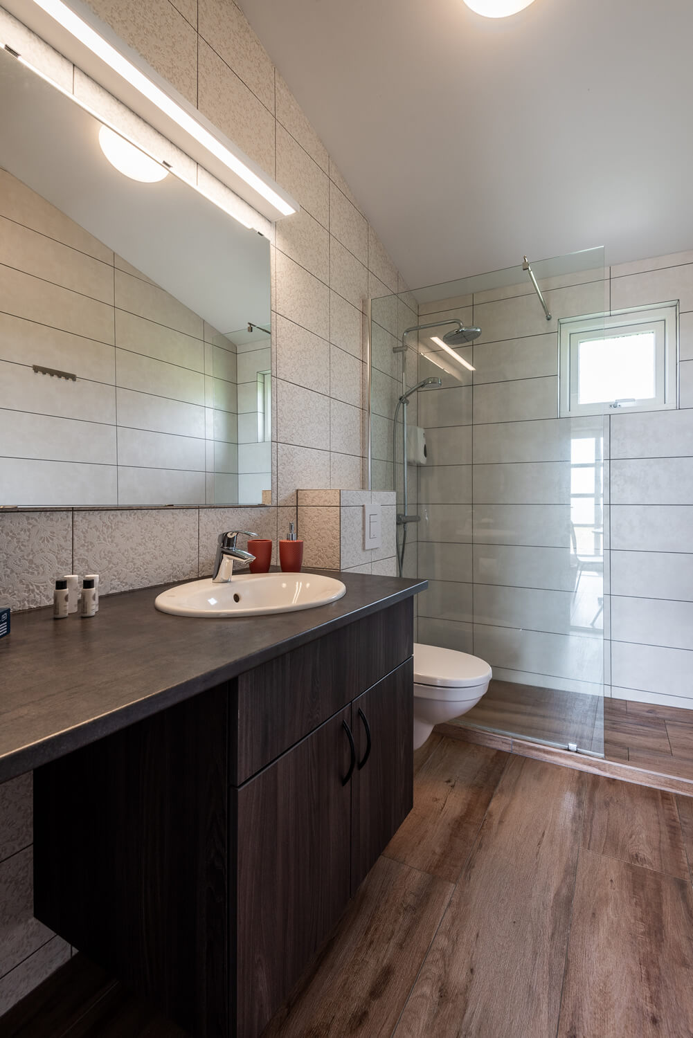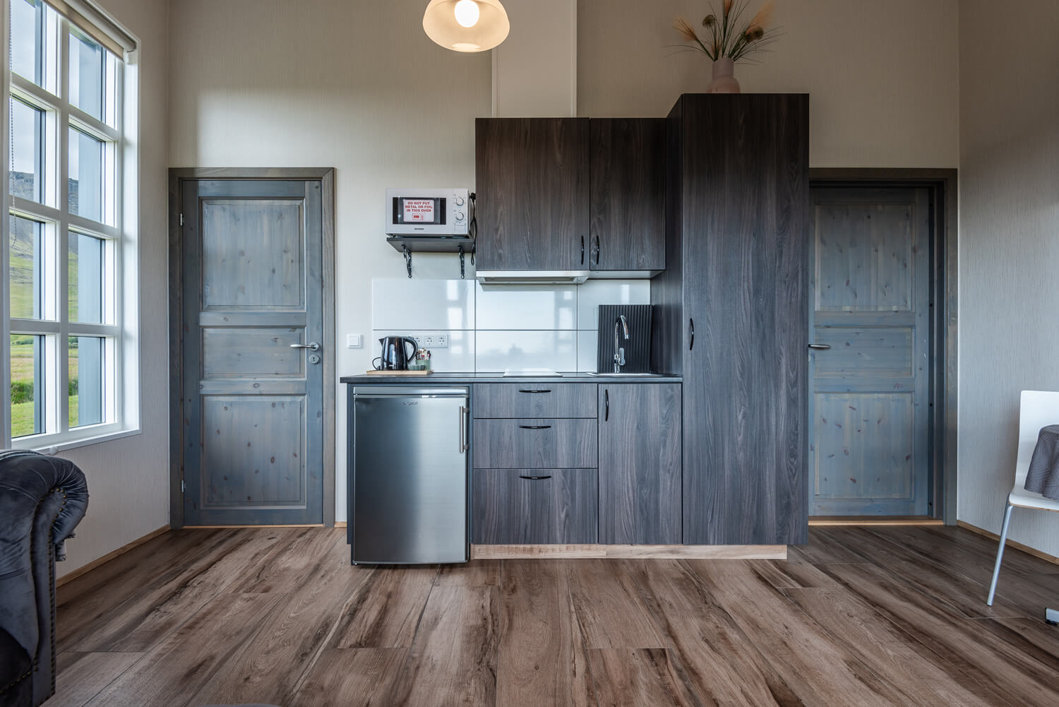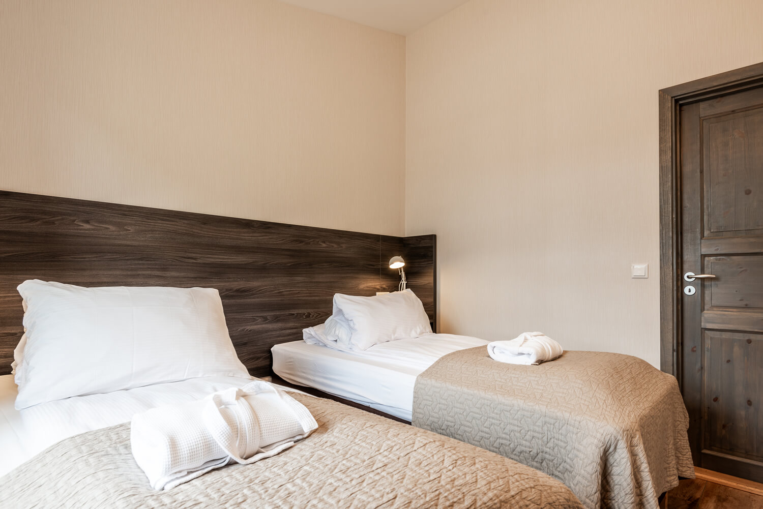 Next to the hotel are 5 deluxe apartments: Deluxe apartment is a one bedroom apartments, each accommodates up to 2 guests. Apartments have a fully equipped kitchen, bedroom with twin or queen size bed and living room. Guests have access an android TV, high speed internet as-well as access to the hot-tub. Breakfast is included for all guests at the hotel. Children six years or younger stay free of charge if they share a bed with their parents. Baby cot can be requested.